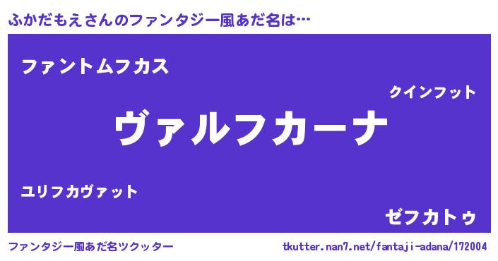 | 意味不明あだ名 | 『住所不定無職ふかだもえ(68歳)』 |