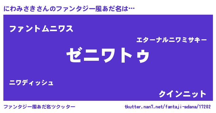 | 意味不明あだ名 | 『自称にわみさき』『永久保存にわみさき』 |