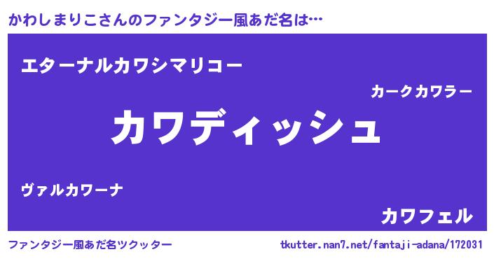 | 意味不明あだ名 | 『永久保存かわしまりこ』 |