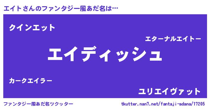 | 男性向けラノベタイトル風あだ名 | 『エイトという概念が存在しない退屈な世界 』 |