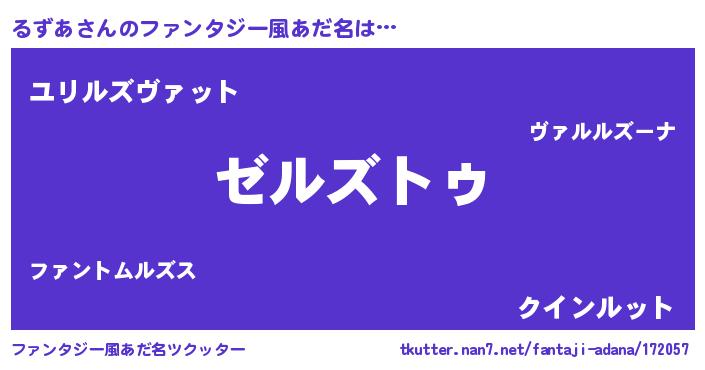 | 男性向けラノベタイトル風あだ名 | 『るずあに滅ぼされるだけの簡単なお仕事です』 |