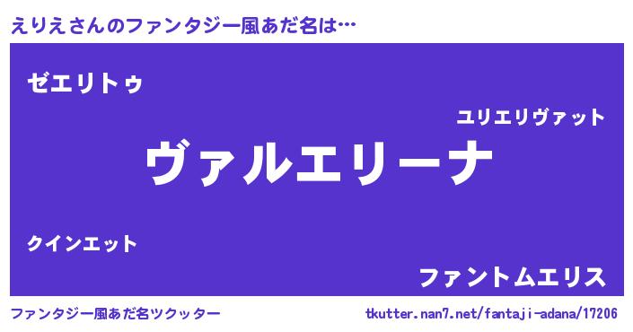 | 男性向けラノベタイトル風あだ名 | 『魔弾の王とえりえ』 |
