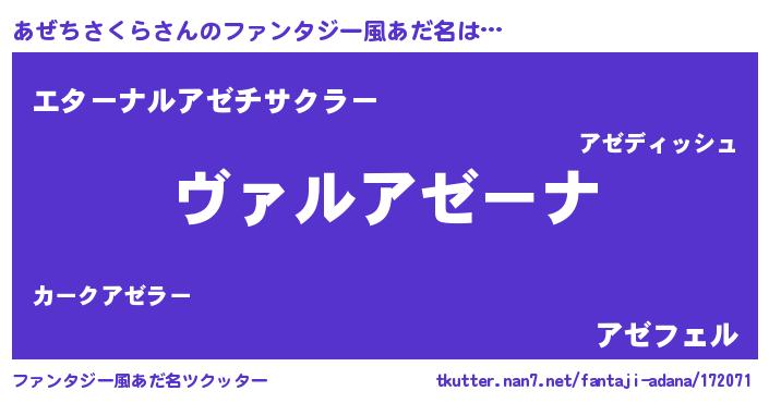 | ヒーロー風カッコイイあだ名 | 『仮面アゼダー』『スーパーアゼチサクラ』 |