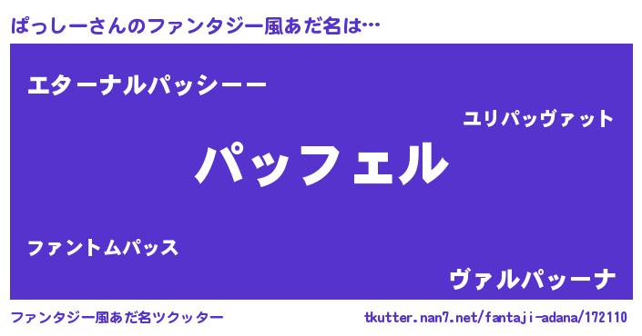 | 胡散臭い通販商品みたいなあだ名 | 『億万長者になれる水晶球…その名も「ぱっしー」』 |