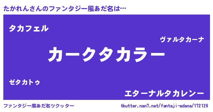 | 意味不明あだ名 | 『ペロリンたかれん』『自称たかれん』 |