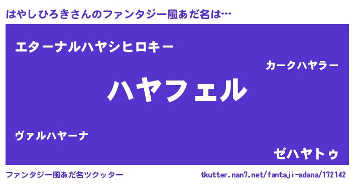 | ヒーロー風カッコイイあだ名 | 『スーパーハヤシヒロキ』『仮面ハヤダー』 |