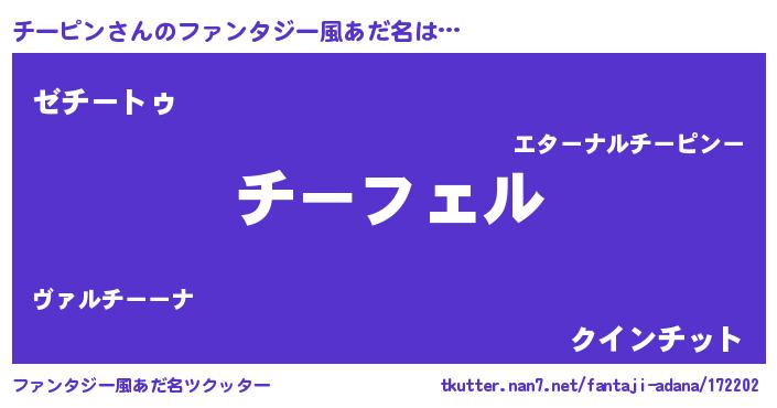 | ヒーロー風カッコイイあだ名 | 『スーパーチーピン』『最強戦士チーピン』 |