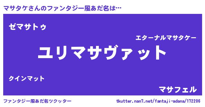 | 男性向けラノベタイトル風あだ名 | 『マサタケスレイヤー』 |