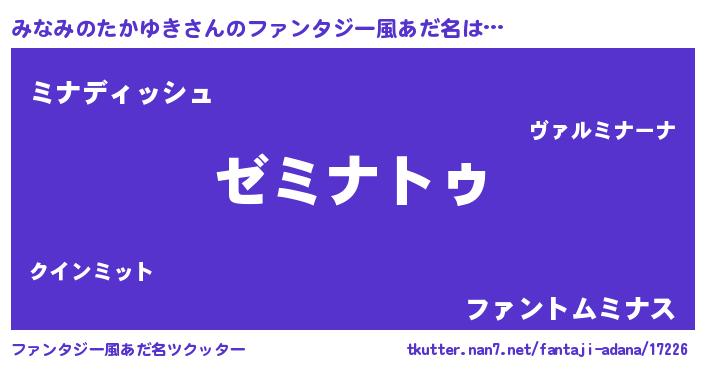 | 女子向けラノベタイトル風あだ名 | 『みなみのたかゆきアンティーク』 |