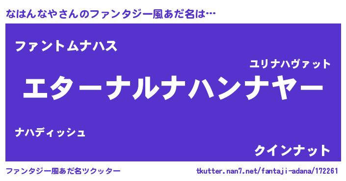 | ポケモン風あだ名 | 『ナハンダネ』『ヒナハンナヤ』 |