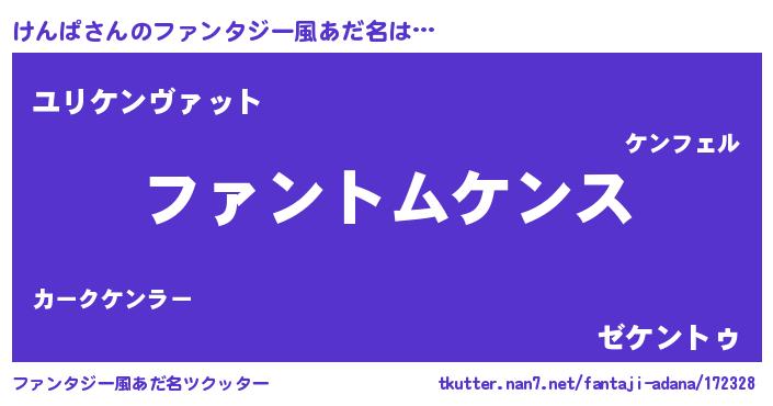 | ヒーロー風カッコイイあだ名 | 『炎刃騎士ケン』『最強戦士ケンパ』 |