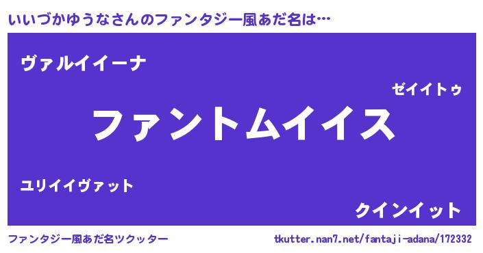 | ポケモン風あだ名 | 『ヒイイヅカユウナ』『イーイイ』 |