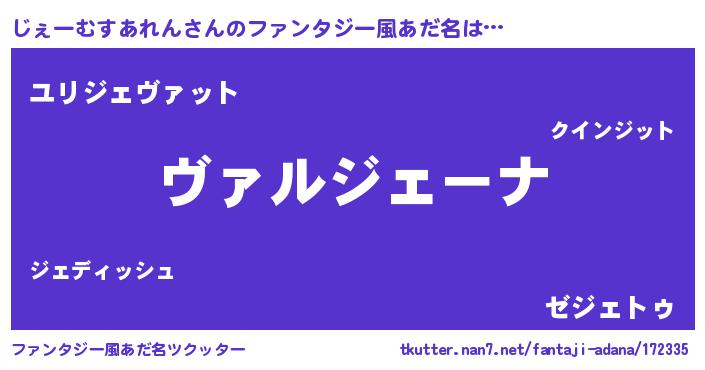 | 男性向けラノベタイトル風あだ名 | 『この素晴らしい世界にじぇーむすあれんを!』 |