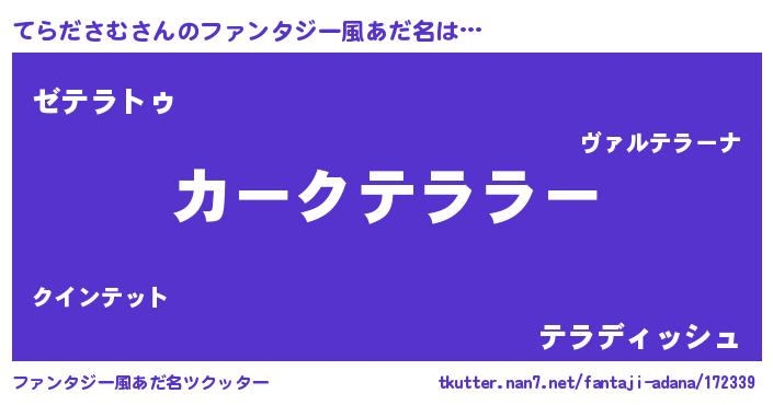 | 伝説のあだ名 | 『聞きしに勝る吟遊詩人てらださむ』 |