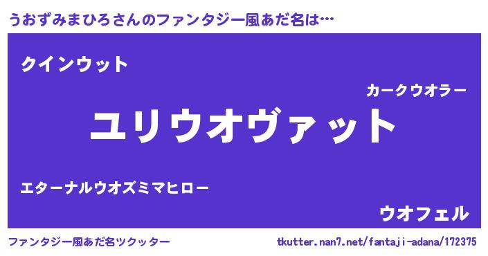 | 男性向けラノベタイトル風あだ名 | 『うおずみまひろ~年齢イコール彼女いない歴の魔法使い~』 |