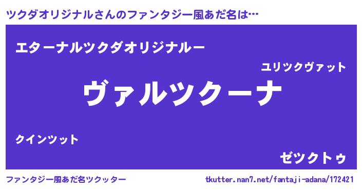 | 男性向けラノベタイトル風あだ名 | 『この素晴らしい世界にツクダオリジナルを!』 |