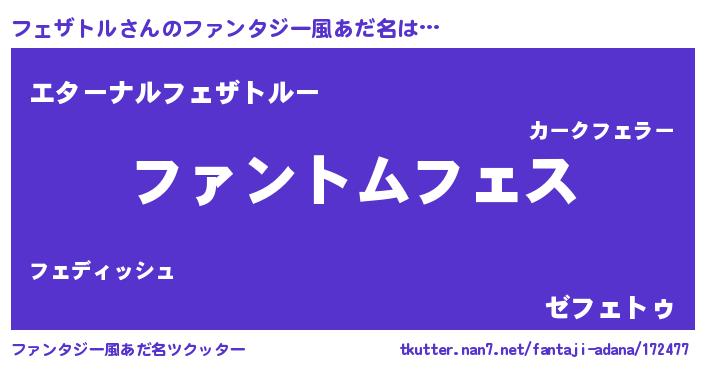 | 男性向けラノベタイトル風あだ名 | 『ダンジョンにフェザトルを求めるのは間違っているだろうか』 |