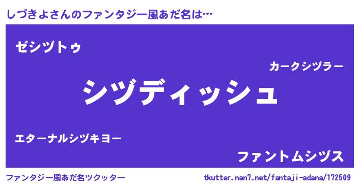 | 意味不明あだ名 | 『永久保存しづきよ』『自称しづきよ』 |