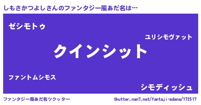 | ヘコむあだ名 | 『しもさかつよし(爆)』『しもお』 |