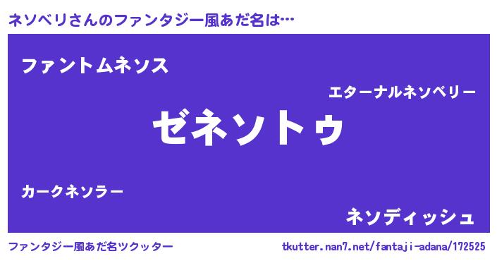 | 意味不明あだ名 | 『自称ネソベリ』『永久保存ネソベリ』 |