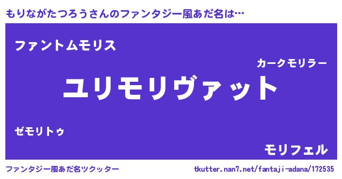 | 男性向けラノベタイトル風あだ名 | 『転生したらもりながたつろうだった件』 |
