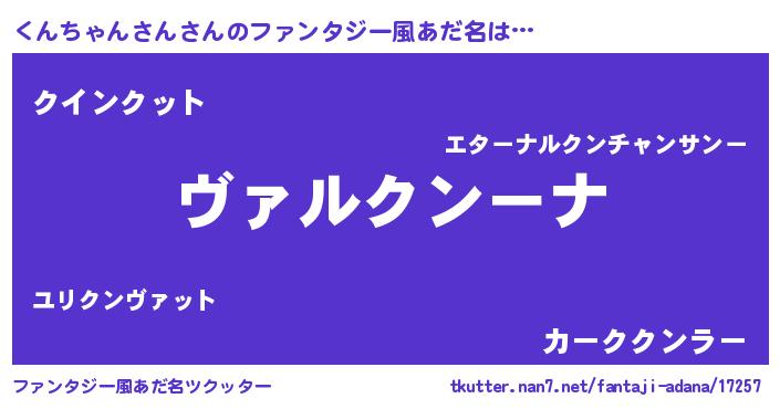 | 男性向けラノベタイトル風あだ名 | 『この素晴らしい世界にくんちゃんさんを!』 |
