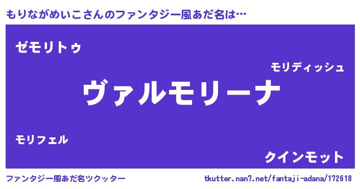 | 男性向けラノベタイトル風あだ名 | 『この素晴らしい世界にもりながめいこを!』 |