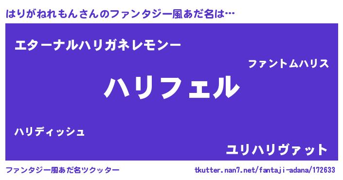 | ヘコむあだ名 | 『はりっふぃ~』『つくし』『はりを』 |