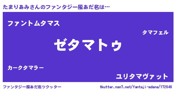 | ポケモン風あだ名 | 『タマセウス』『ヒタマリアミ』 |