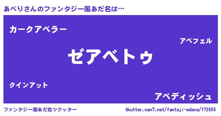 | 男性向けラノベタイトル風あだ名 | 『Re:あべりから始める異世界生活』 |