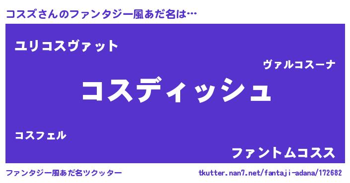 | 胡散臭い通販商品みたいなあだ名 | 『絶対に幸福をもたらす水素水…その名も「コスズ」』 |