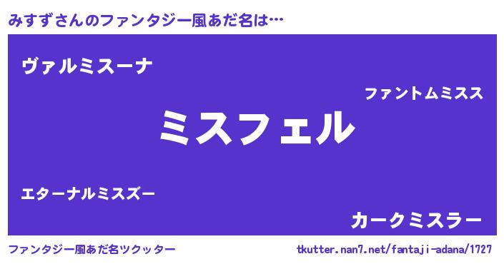 | 男性向けラノベタイトル風あだ名 | 『みすずの憂鬱』『魔弾の王とみすず』 |