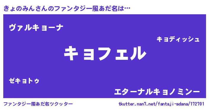 | ヒーロー風カッコイイあだ名 | 『スーパーキョノミン』『仮面キョダー』 |