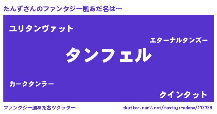 | 女子向けラノベタイトル風あだ名 | 『たんず姫と円卓の騎士』 |