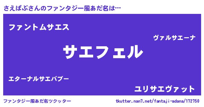 | 男性向けラノベタイトル風あだ名 | 『サエバブアートオンライン』 |
