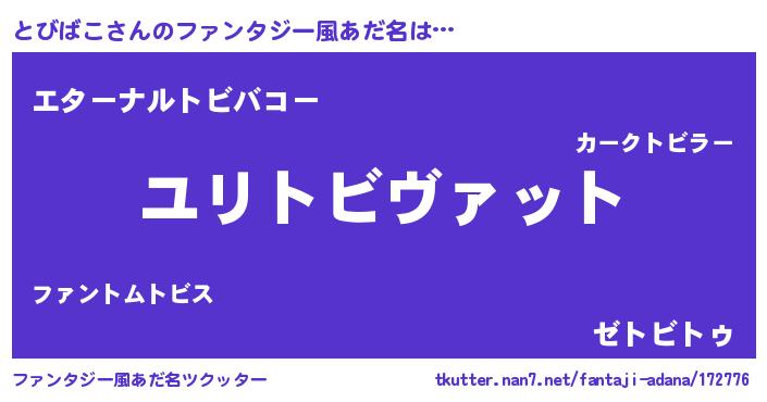 | 男性向けラノベタイトル風あだ名 | 『とびばこ~年齢イコール彼女いない歴の魔法使い~』 |