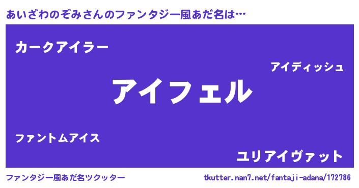 | 男性向けラノベタイトル風あだ名 | 『あいざわのぞみの憂鬱』 |