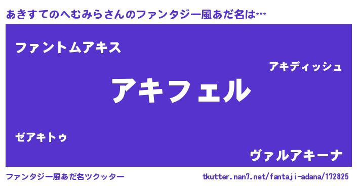 | 男性向けラノベタイトル風あだ名 | 『あきすてのへむみらの憂鬱』 |