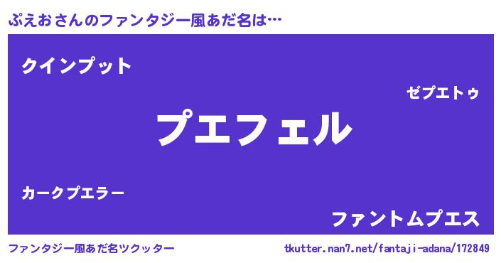 | ヒーロー風カッコイイあだ名 | 『スーパープエオ』『愛の使者ぷえお』 |