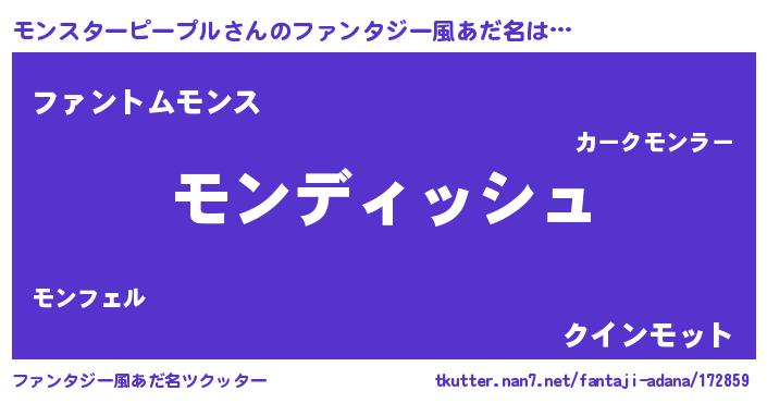 | 胡散臭い通販商品みたいなあだ名 | 『絶対に幸福をもたらす水素水…その名も「モンスターピープル」』 |