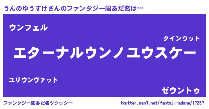 | 男性向けラノベタイトル風あだ名 | 『やはりうんのゆうすけの青春ラブコメはまちがっている 』 |