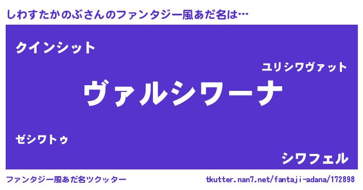 | 男性向けラノベタイトル風あだ名 | 『この素晴らしい世界にしわすたかのぶを!』 |