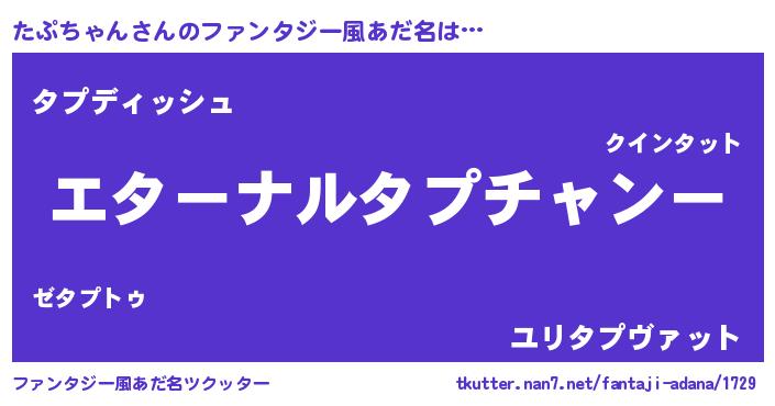 | 女子向けラノベタイトル風あだ名 | 『たぷちゃんの雑貨屋さん』 |