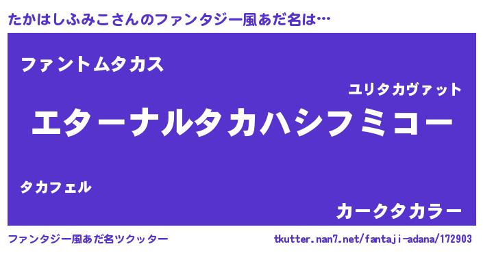 | 欧米人風あだ名 | 『たかはしふみこクリステル』 |