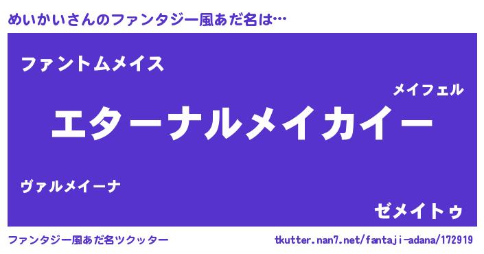 | 意味不明あだ名 | 『めいかいフォーエバー』『自称めいかい』 |