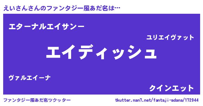| 女子向けラノベタイトル風あだ名 | 『えいさんの契約王妃』『えいさん恋絵巻』 |