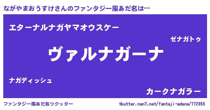 | 男性向けラノベタイトル風あだ名 | 『この素晴らしい世界にながやまおうすけを!』 |