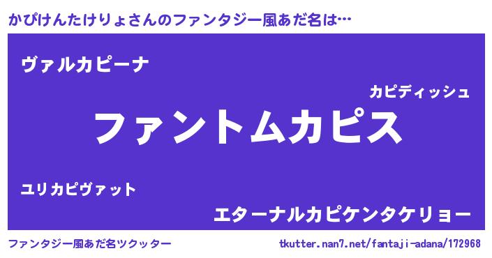 | 女子向けラノベタイトル風あだ名 | 『かぴけんたけりょは平凡を望む』 |