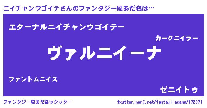 | 意味不明あだ名 | 『住所不定無職ニイチャンウゴイテ(4歳)』 |
