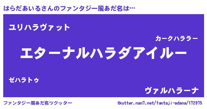| 女子向けラノベタイトル風あだ名 | 『はらだあいるの雑貨屋さん』 |